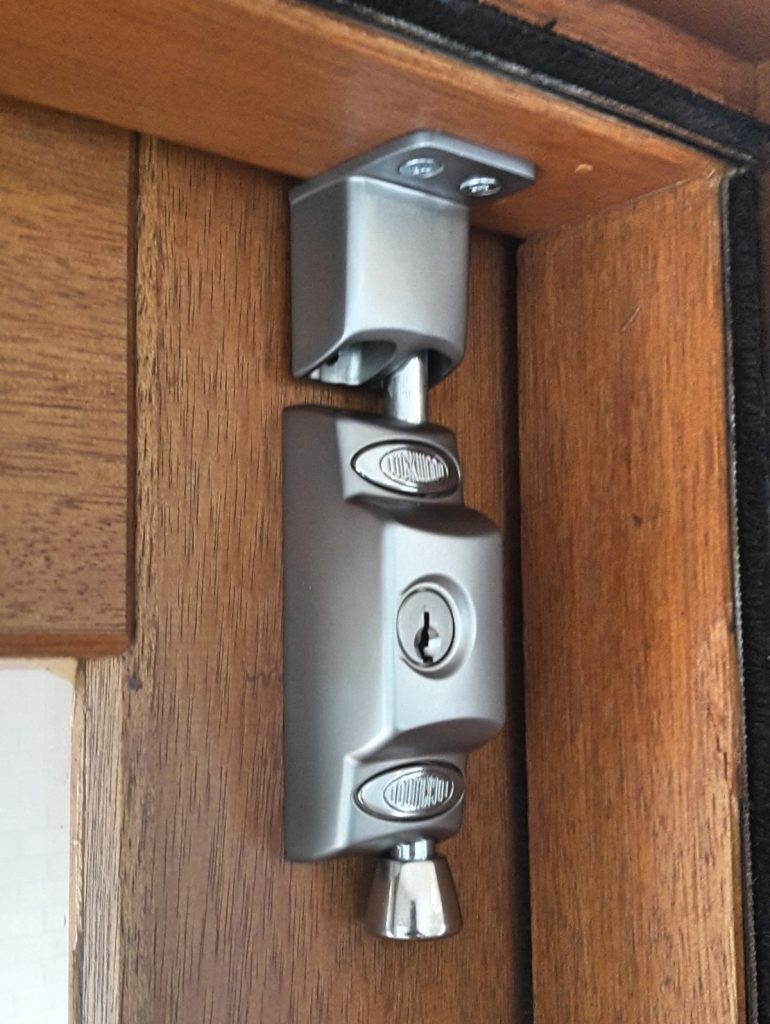 Security professionals & Locksmiths recommend the following for maximum peace of mind. Fit two patio bolts – one at the top and one at the bottom – for maximum resistance to lifting. It is also recommended to use key-operated versions, not just the snib-only ones. Ensure you screw the keeper plates with one-way screws or clutch-head screws so they can’t be removed from the outside.